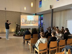 Im Rahmen des Grundkurses Katholische Religionslehre der Jahrgangsstufe 13/Q2, geleitet von Herrn Siegel, hatten wir die Möglichkeit, das Bestattungshaus Camps in Grefrath zu besuchen. Für viele von uns war dies eine ganz neue und zunächst ungewohnte Erfahrung, die sich jedoch schnell als sehr interessant und lehrreich herausstellte. Geführt wurden wir von Frederik Horn, einem ehemaligen Schüler unserer Schule, der sich aktuell im ersten Ausbildungsjahr zum Bestatter befindet. Es war besonders spannend, von jemandem durch das Bestattungshaus geführt zu werden, der selbst noch nicht allzu lange aus der Schule heraus ist und sehr offen von seinem Ausbildungsalltag berichtet hat. Er nahm sich viel Zeit für unsere Fragen und erklärte uns seine Aufgaben sehr anschaulich. Wir besichtigten unter anderem die Prosektur, den Leichenwagen, die Sarg- und Urnenausstellung sowie das Kolumbarium. Außerdem durften wir die Aufbahrungs- und Verabschiedungsräume, die Kapelle, die Büroräume und den Raum für das Beerdigungskaffee besichtigen. Dadurch wurde uns deutlich, wie vielfältig die Tätigkeiten in einem Bestattungshaus sind und wie viel Organisation und Einfühlungsvermögen dazugehört.