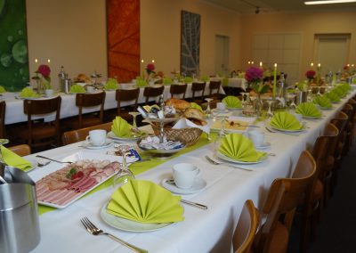 Wenn gewünscht bieten wir nach den Trauerfeierlichkeiten gerne eine Bewirtung im Hause an. Besonders beliebt ist unsere Rheinische Kaffeetafel mit süßen und herzhaften Produkten aus der Region. Aber auch Sektempfang mit Kuchen, Suppen, Canapes oder sogar ein Buffet richten wir in Zusammenarbeit mit unserem Caterer gerne für Sie aus. Wir haben die passenden Räumlichkeiten.