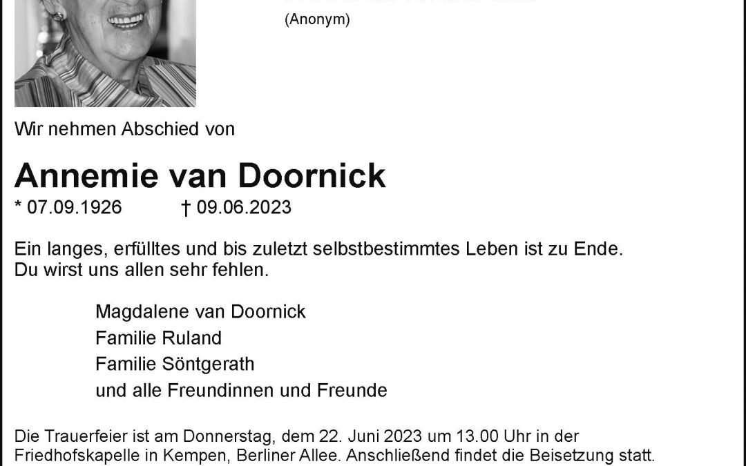 Startseite $ Trauer Portal $ Annemie van Doornick