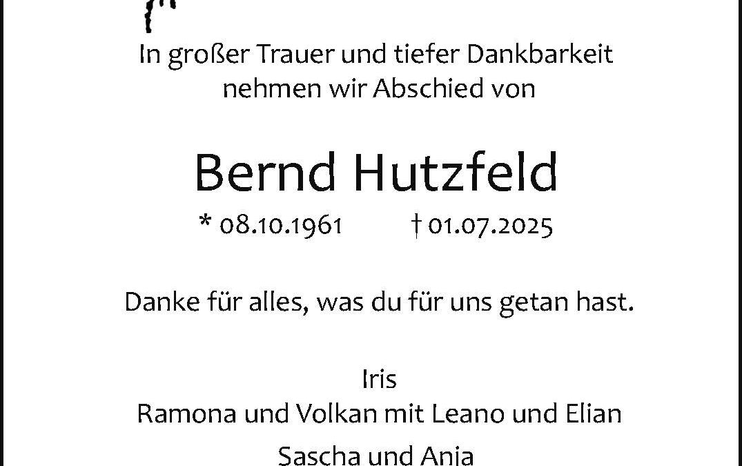 Startseite $ Trauer Portal $ Bernd Hutzfeld