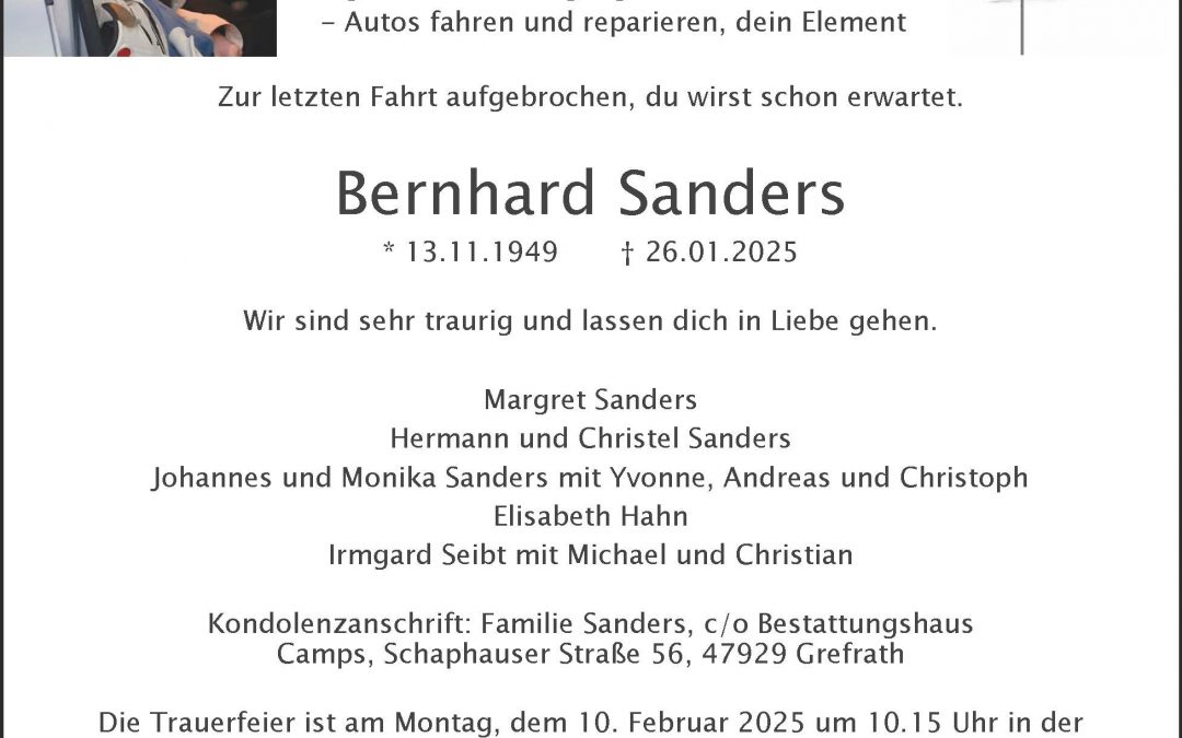 Startseite $ Trauer Portal $ Bernhard Sanders