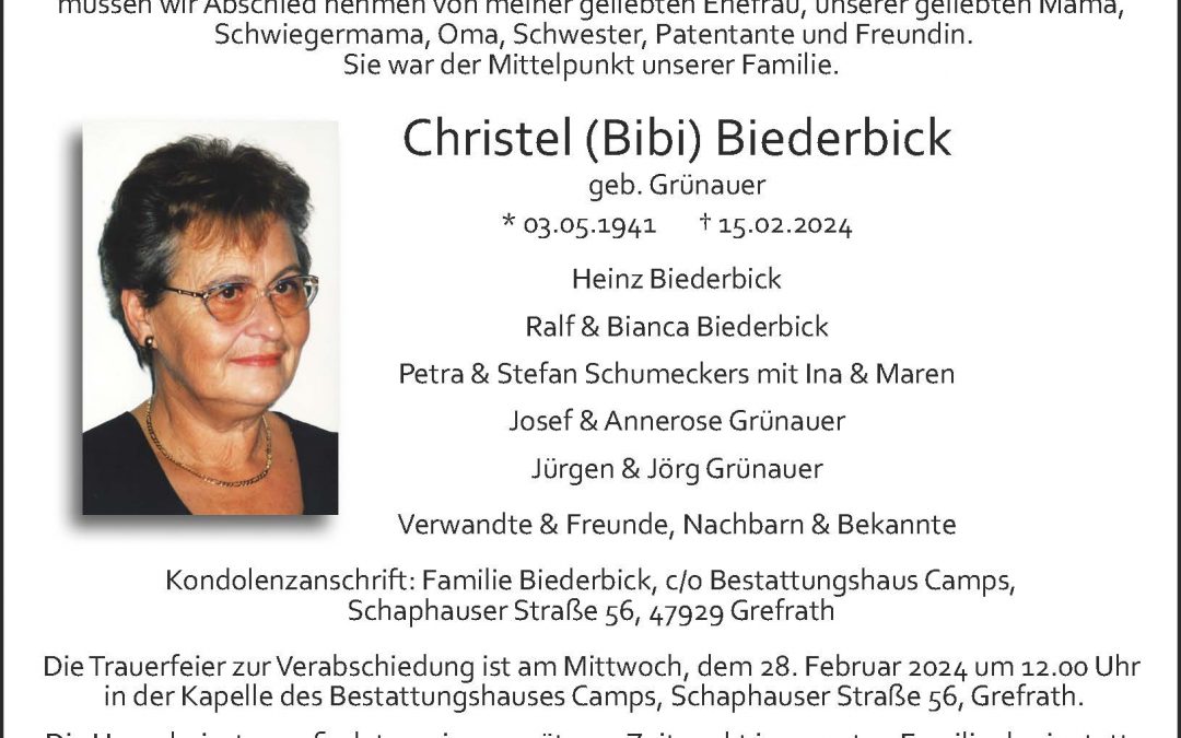 Startseite $ Trauer Portal $ Christel (Bibi) Biederbick