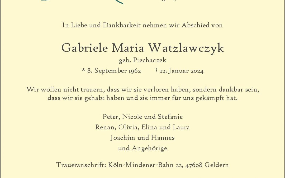 Startseite $ Trauer Portal $ Gabriele Maria Watzlawcyk
