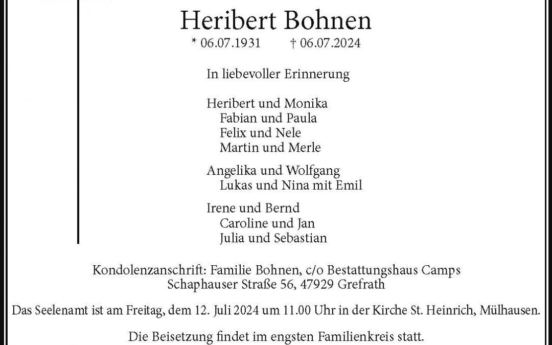 Startseite $ Trauer Portal $ Heribert Bohnen