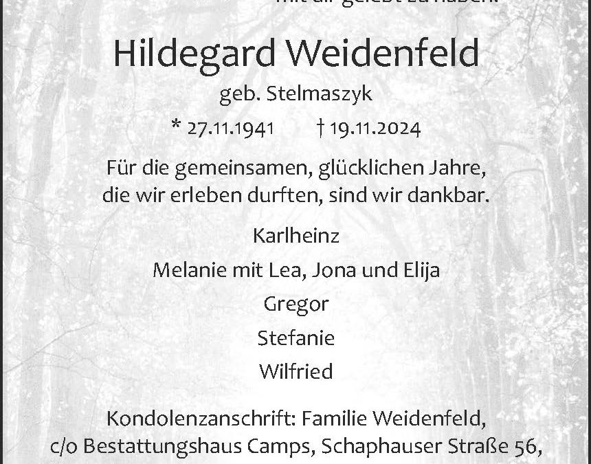 Startseite $ Trauer Portal $ Hildegard Weidenfeld