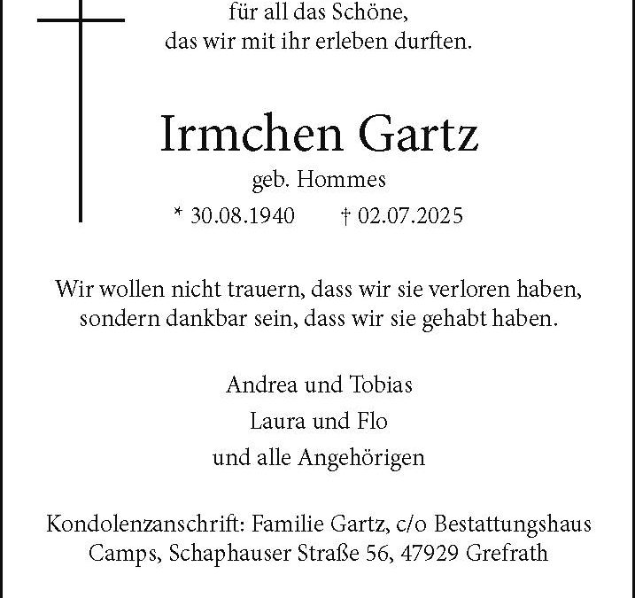 Startseite $ Trauer Portal $ Irmchen Gartz