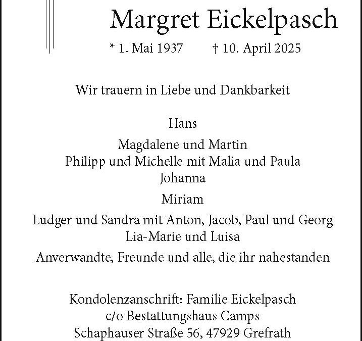 Startseite $ Trauer Portal $ Margret Eickelpasch