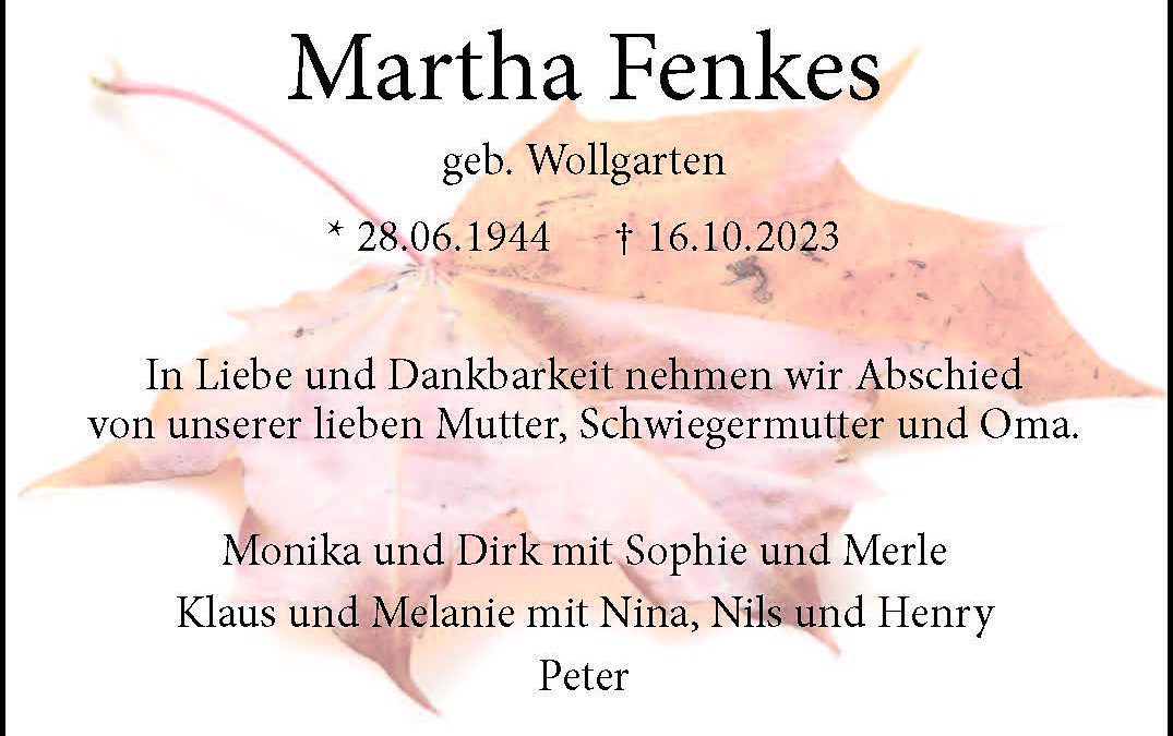 Startseite $ Trauer Portal $ Martha Fenkes