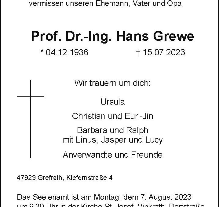 Startseite $ Trauer Portal $ Prof. Dr.-Ing. Hans Grewe